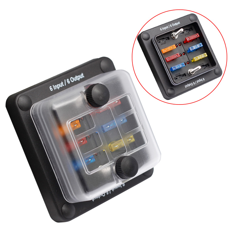 A Waterproof 32V 6 Way Car Boat Marine RV Truck Blade Fuse Box is a professional circuit protection device designed for multi-circuit power distribution in vehicles and marine vessels. It features 6 independent circuits to safeguard electrical systems from overcurrent and short circuits, with IP67 waterproof rating for harsh environments. Suitable for cars, boats, marine crafts, RVs, and trucks, it ensures stable power management in wet, dusty, or vibrating conditions.